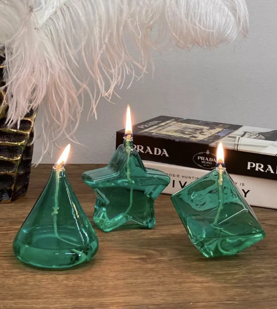 SET X3 VELA DE VIDRIO RECARGABLE FIGURAS VERDE